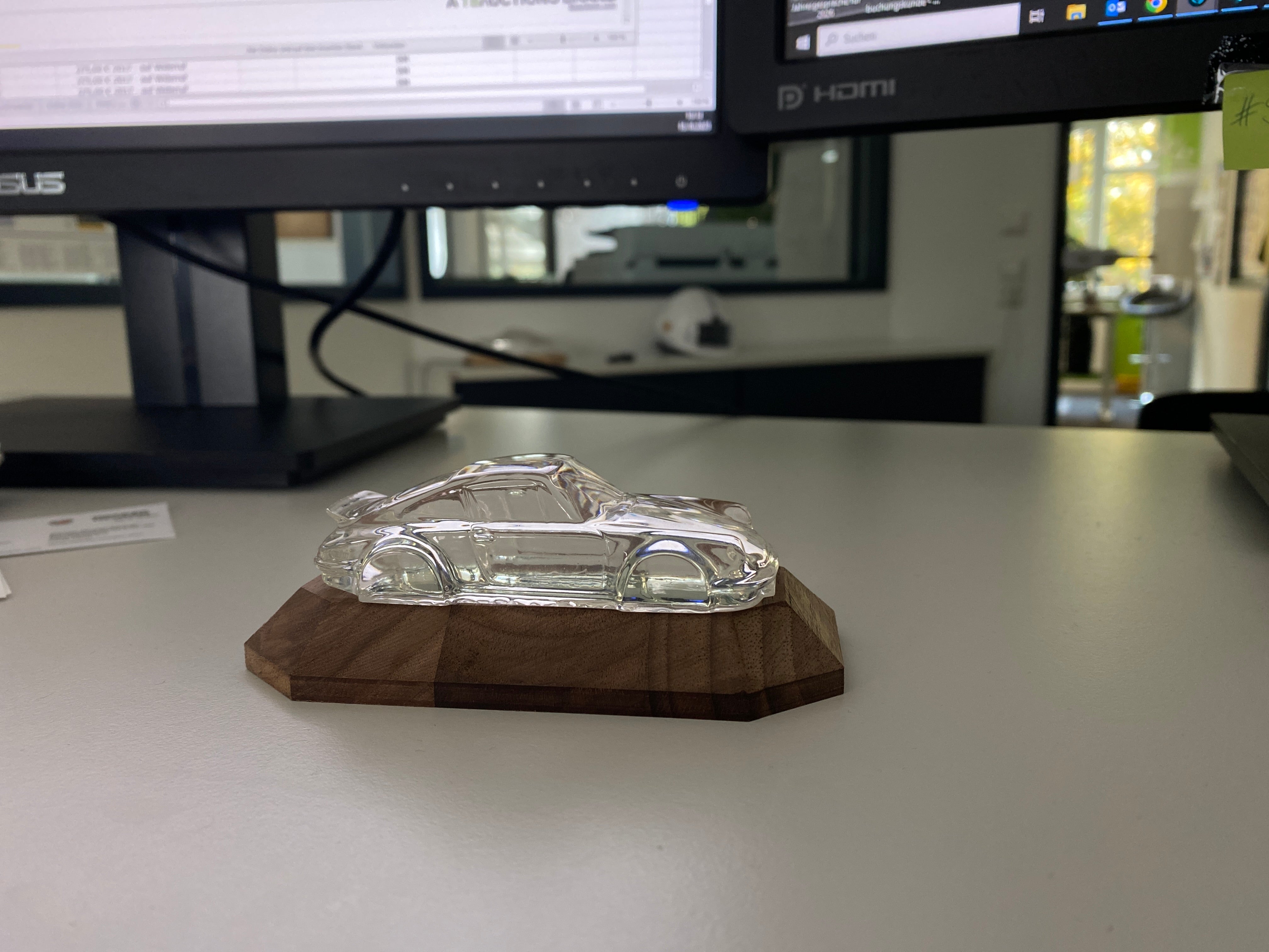 Das Licht bricht in der Skulptur richtig edel. Auf dem Schreibtisch wirkt alles aufgeräumter und hochwertiger. Genau der kleine Motivations-Boost, den ich wollte.